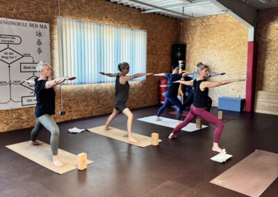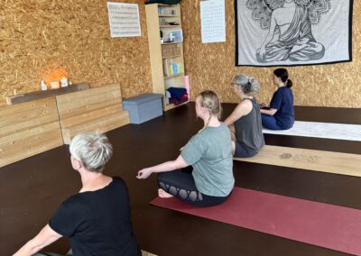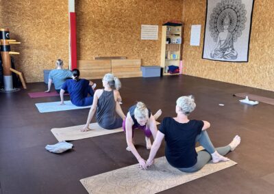 ist eine sanfte Praxis, die durch die Kombination von lang gehaltenen Dehnungen, Atemtechniken und meditativer Achtsamkeit, in der die Asanas für mehrere Minuten gehalten werden, so dass Muskeln und Faszien stimuliert werden und der gesamte Körper sowie das Nervensystem üben “loszulassen” und lernen, alles genau so anzunehmen, wie es gerade ist.