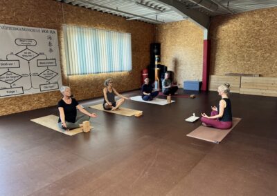 Aktive Elemente und Entspannung wechseln sich ab. Durch dieses Zusammenspiel wird wieder eine Verbindung zur inneren Kraft hergestellt. Körper und Geist finden zur Ruhe. Ein Gefühl der Gelassenheit stellt sich ein.