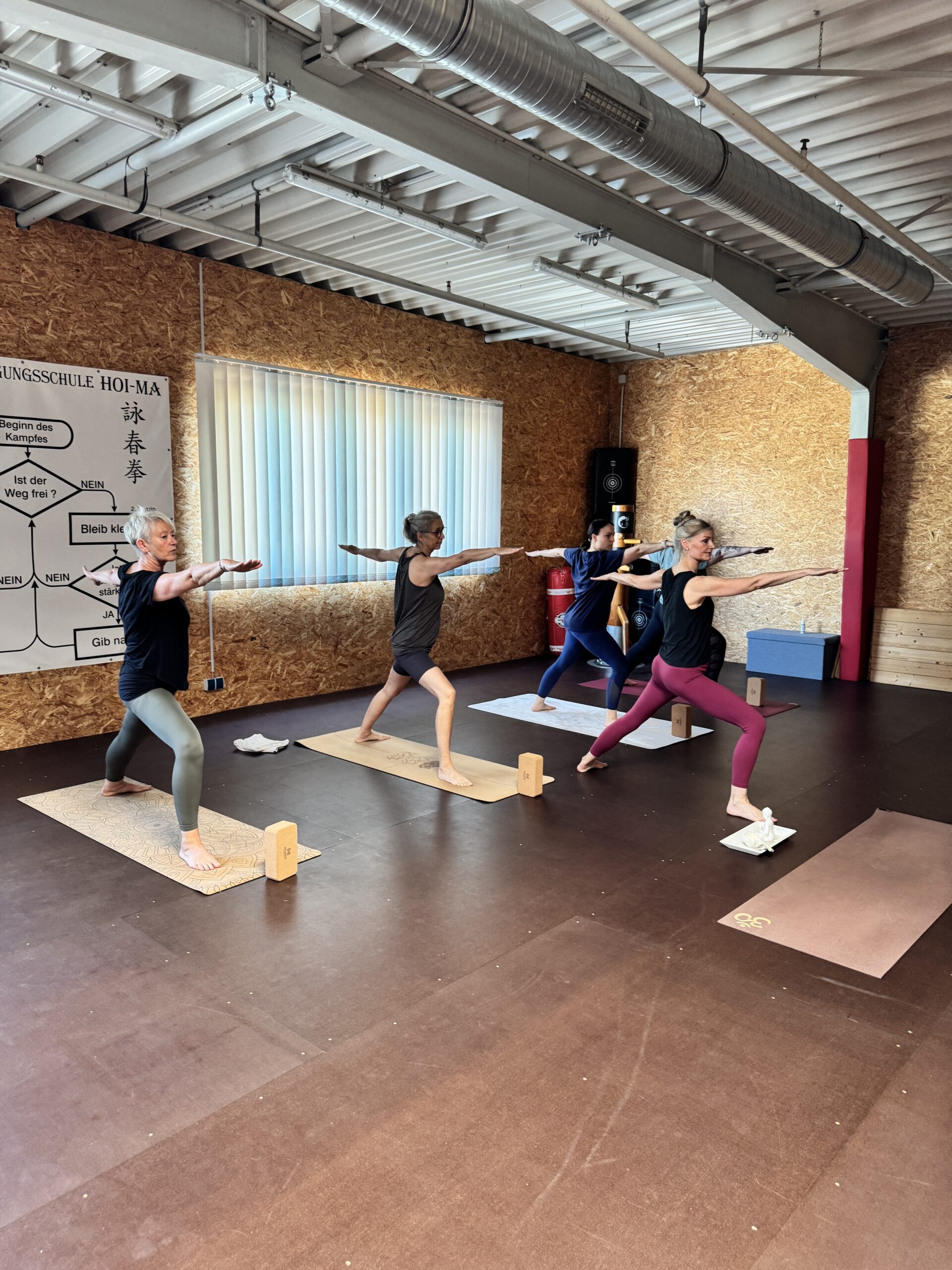 arbeitet mit dynamischen, kräftigenden Bewegungen im Rhythmus deines Atems. Die Atmung gibt hierbei das Tempo vor, wodurch ein meditativer Zustand erreicht werden kann. Das Thema der Stunde wechselt jede Woche, so dass es nie langweilig wird! Beim Üben von Asanas sind physiologische Ausführung aber auch der Spaß an der Bewegung gleichermaßen wichtig. Kombiniert mit yogischen Atemübungen, Pranayama genannt, und Entspannungsübungen wird daraus eine ganzheitliche Praxis, die für jede Altersstufe geeignet ist.